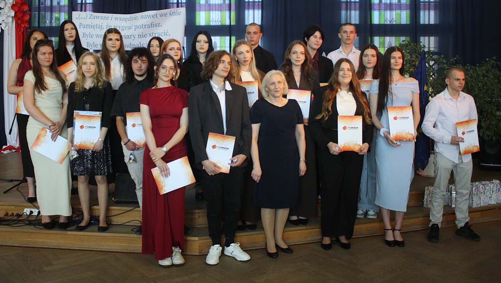 Było zabawnie, momentami bardzo trafnie, a przede wszystkim – z ogromnym luzem i dystansem. Do tego śpiew, muzyka na żywo i występy, które pokazały, jak utalentowaną mamy młodzież. Były też wyróżnienia, nagrody, podziękowania dla nauczycieli, wspólne zdjęcia i ten moment, kiedy każdy z maturzystów podchodzi po świadectwo – niby zwykła formalność, a jednak coś, co zamyka pewien etap.