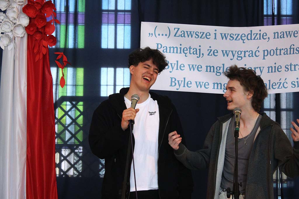 Kiedy zrobiło się naprawdę sentymentalnie, na scenę wkroczyli nasi uczniowie z programem przygotowanym pod okiem pana Władysława Górnego – i… uratowali sytuację.
