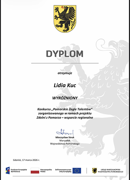 Uczennica klasy 3 TFO – Lidia Kuc zdobyła wyróżnienie w konkursie „Pomorskie Żagle Talentów” za swoją pracę filmową.