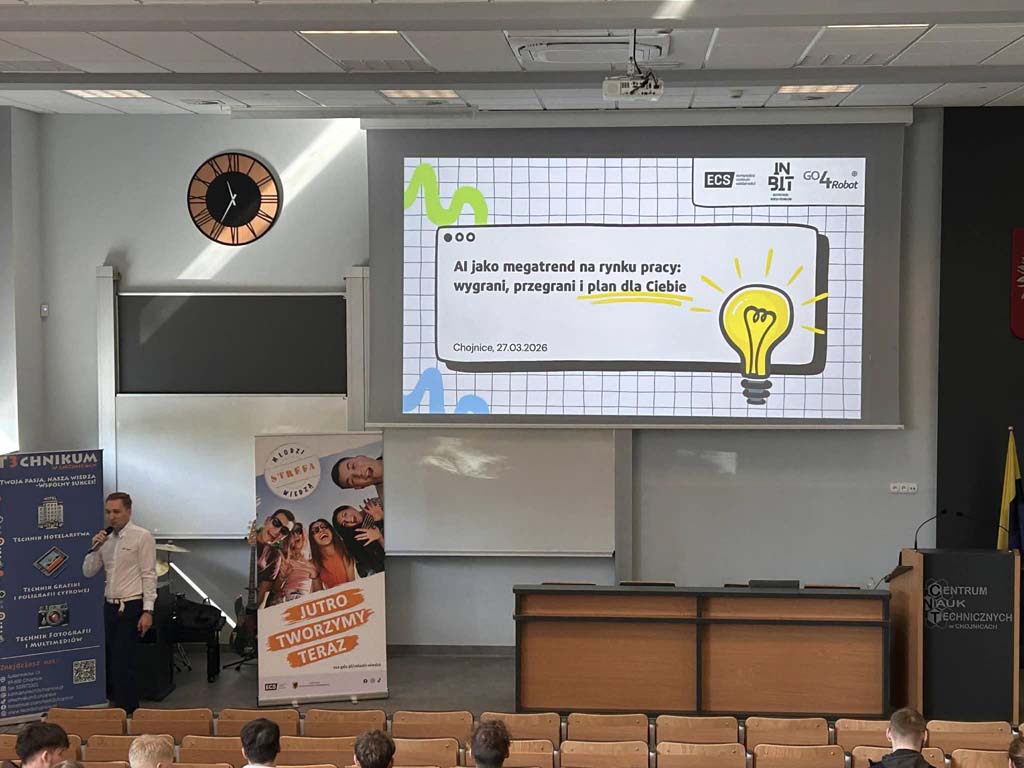 Wydarzenie zostało podzielone na dwie części – prelekcje i warsztaty. Pierwszą prelegentką była Pani dr Ada Florentyna Pawlak- antropolożka technologii, prawniczka i historyczka sztuki specjalizująca się w obszarze społecznych implikacji sztucznej inteligencji, wykładowczyni akademicka. Ta część spotkania była poświęcona głównie refleksji nad tym, jak połączyć kreatywność, odpowiedzialność i technologiczne kompetencje w dzisiejszym świecie. Kolejnym prelegentem był Pan Mateusz Buliński- przedsiębiorca i edukator nowych technologii, prezes zarządu Instytutu Nauki, Biznesu i Technologii oraz właściciel marki edukacyjnej GO4Robot® Trójmiasto. Tematem prelekcji było „AI jako megatrend na rynku pracy: wygrani, przegrani i plan dla Ciebie”. W tej części uczniowie dowiedzieli się jakie kierunki rozwoju warto wybrać, by świadomie planować swoją przyszłość zawodową.