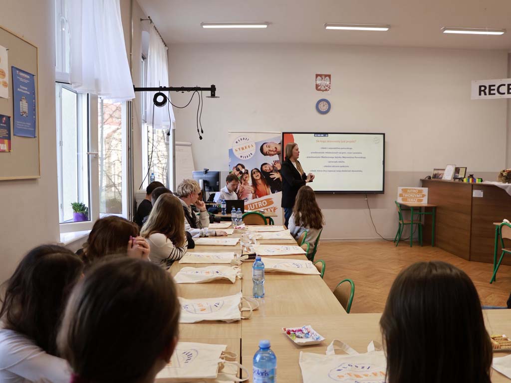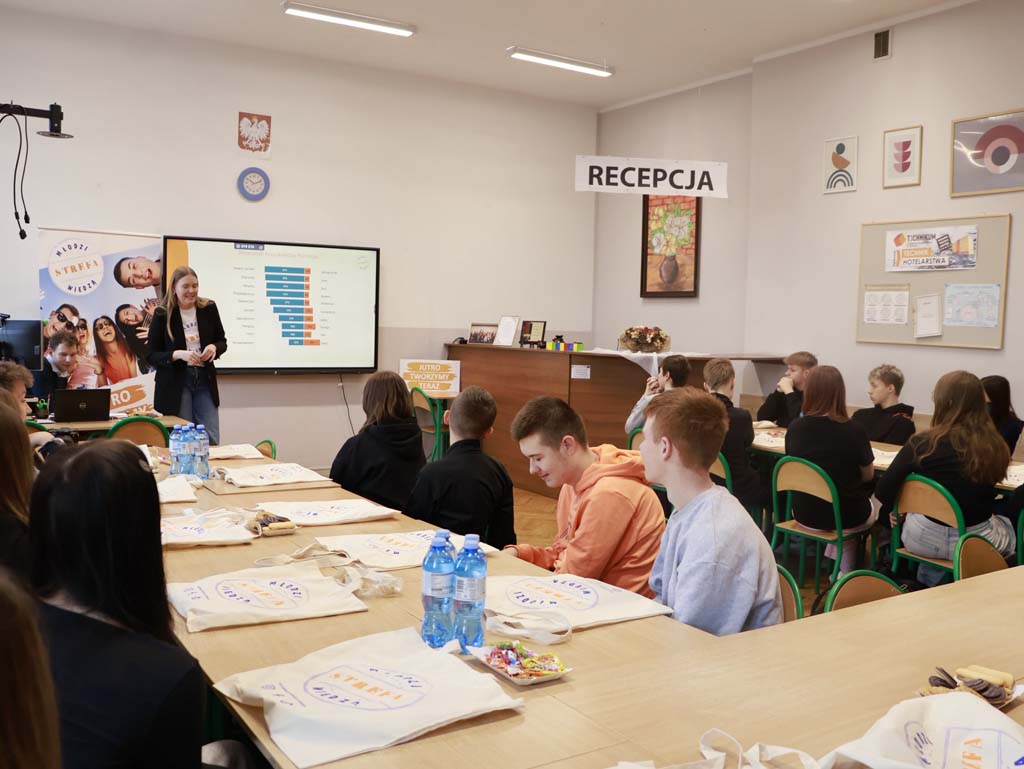 13 listopada uczniowie klas 1tfh oraz 3ttf wzięli udział w spotkaniu w ramach projektu „Strefa Młodzi Wiedzą”. Celem wydarzenia było pogłębienie świadomości Młodzieży w zakresie relacji rówieśniczych, różnorodności oraz przeciwdziałania stereotypom i wykluczeniu, które mimo dużej świadomości społecznej nadal dotykają młodych ludzi. Uczniowie słuchali uważnie, a potem dyskutowali o tym jak kształtują się nasze wyobrażenia o innych ludziach, jak wpływają one na relacje w grupie i jak różnorodność może wzmacniać wspólnotę, rozwijać empatię i kreatywność oraz jak budować relacje oparte na szacunku i współpracy mimo różnic.